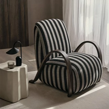 The Buur Lounge Chair effortlessly combines comfort and elegance, featuring a luxuriously cushioned seat and backrest. Designed in collaboration with Says Who, the chair has distinctive, curved armrests crafted from FSC™ certified oak that beautifully mimic the natural flow, enhancing its rounded design. With its smooth construction, the Buur Lounge Chair invites you to indulge in its plush upholstery and experience a truly enveloping embrace. With its vintage-inspired aesthetic, the Buur Lounge Chair serves as a stunning statement piece in any room.